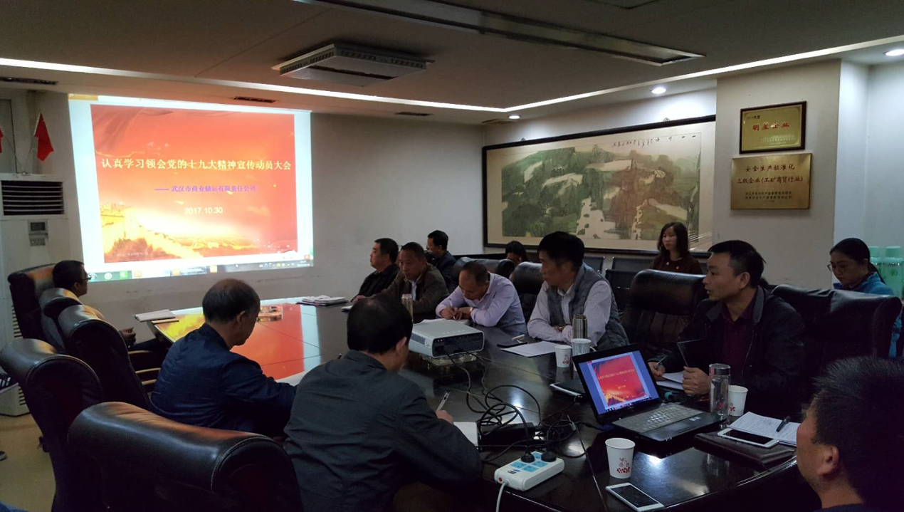 10月30日,公司黨委組織全公司系統(tǒng)內(nèi)黨員、干部約40人左右召開學(xué)習(xí)黨的十九大精神和市委書記陳一新的重要專題講話的宣傳動員大會,大會上公司黨委書記李耀民、總經(jīng)理黃家麟作了動員講話和工作部署,見下圖。