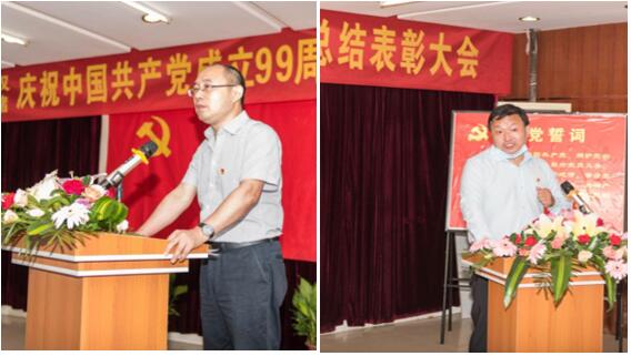 會議以“溫誓詞、憶初心”的方式隆重紀念中國共產(chǎn)黨成立99周年,新黨員入黨宣誓,老黨員重溫入黨誓言,不忘初心、牢記使命,繼承和發(fā)揚黨的優(yōu)良傳統(tǒng),增強使命擔當,更好地推動公司改革發(fā)展。